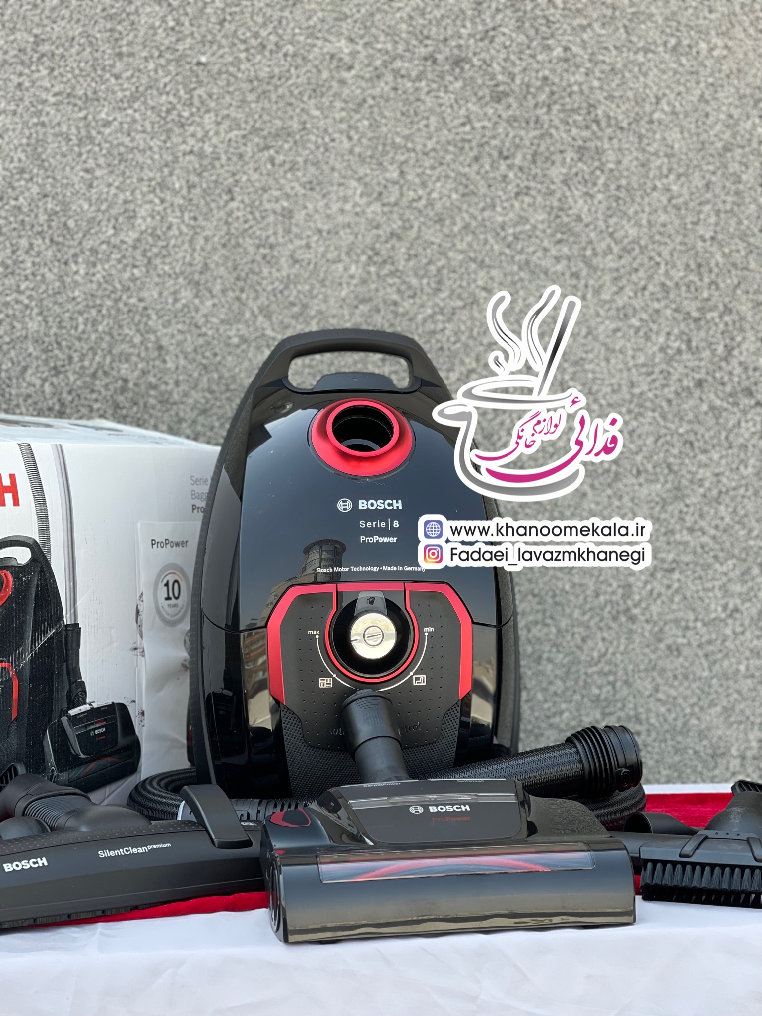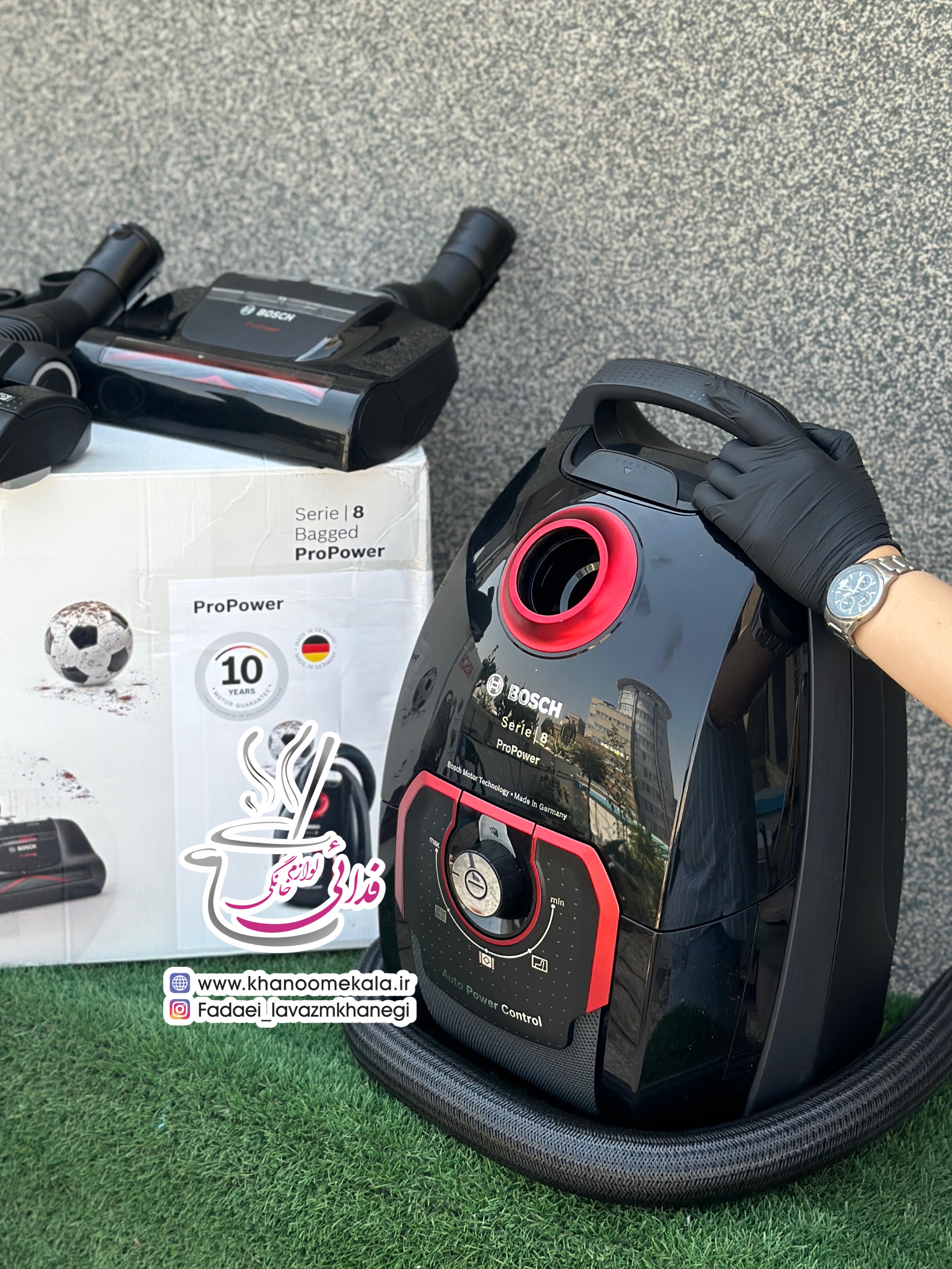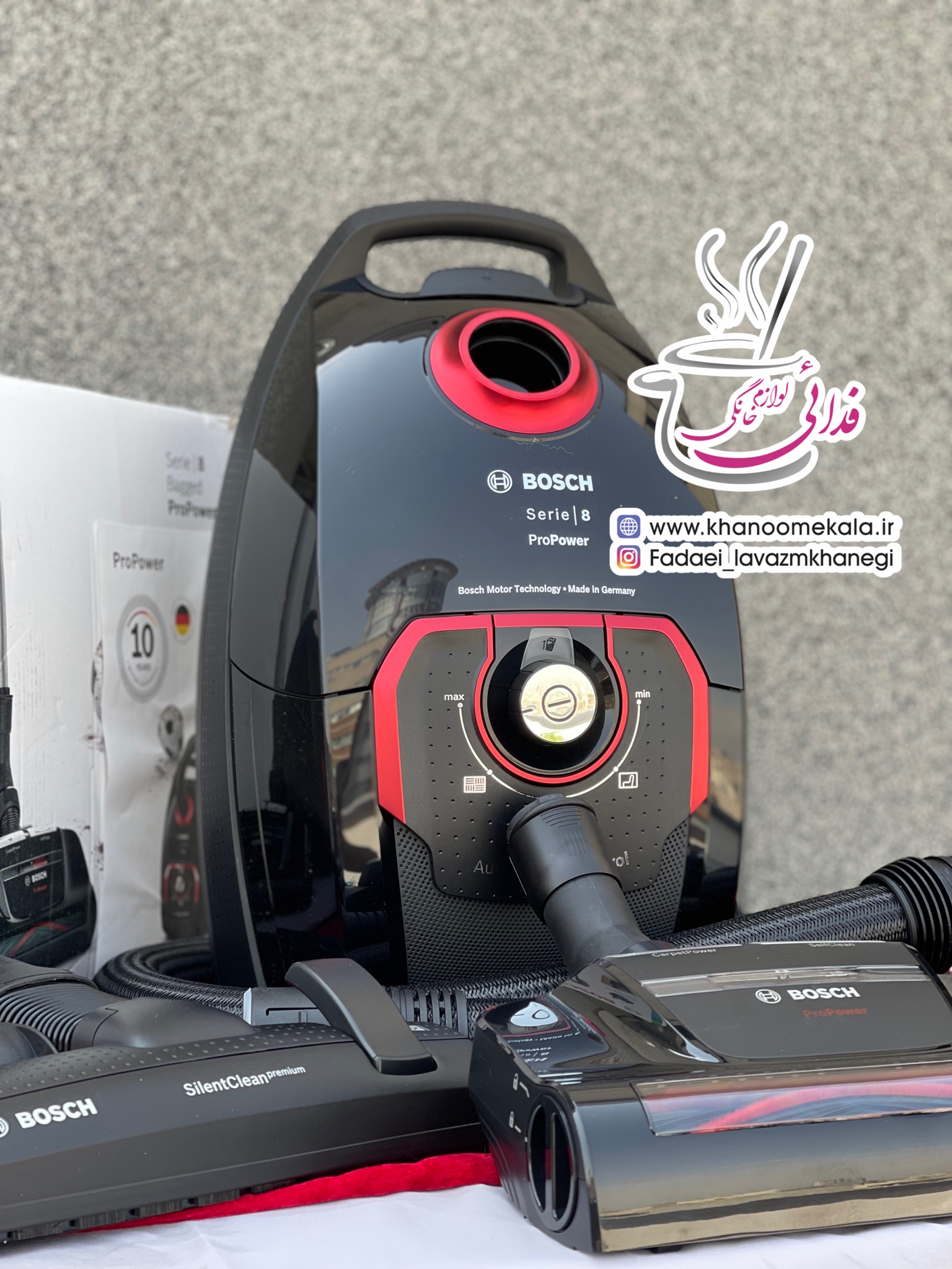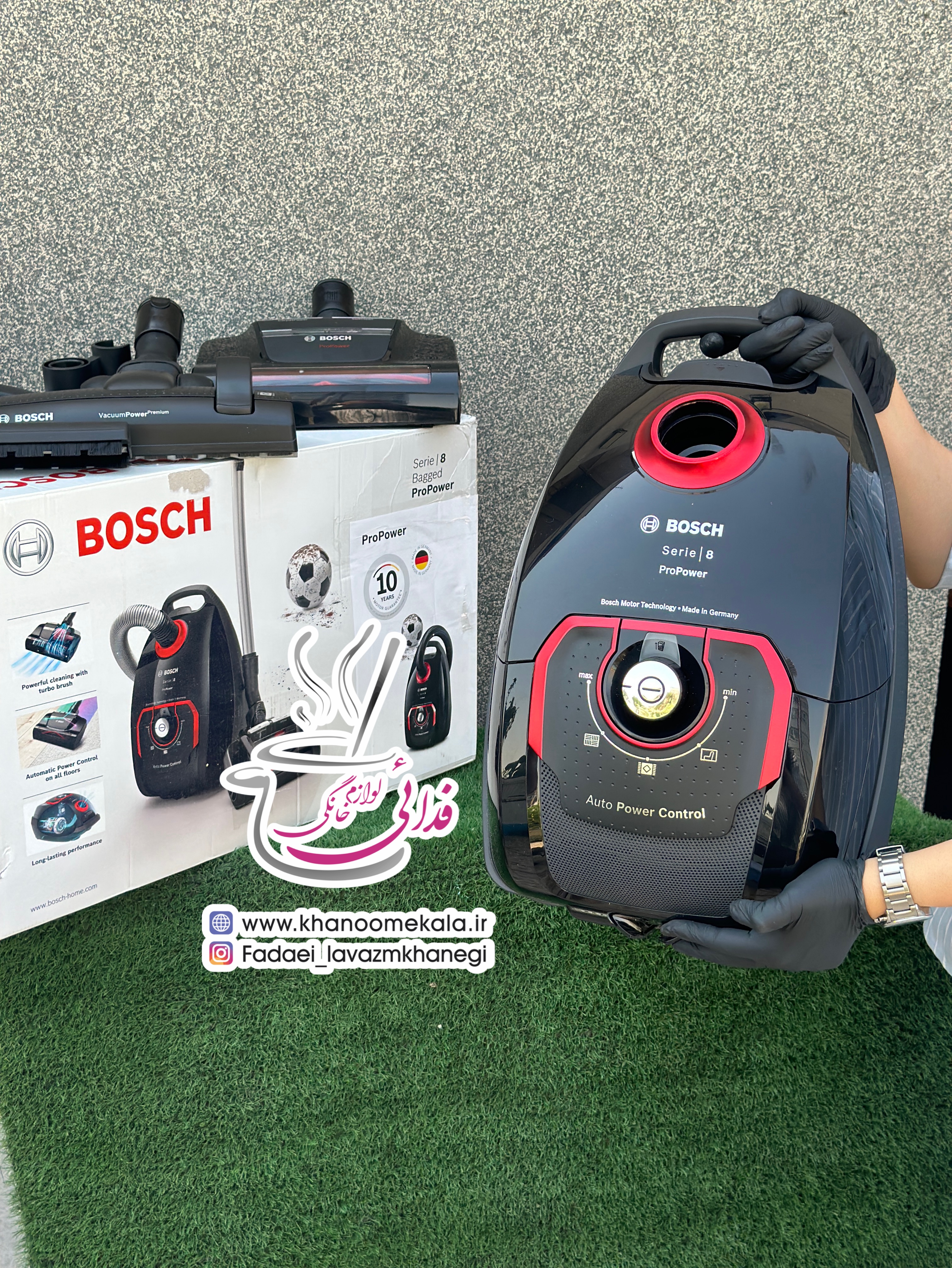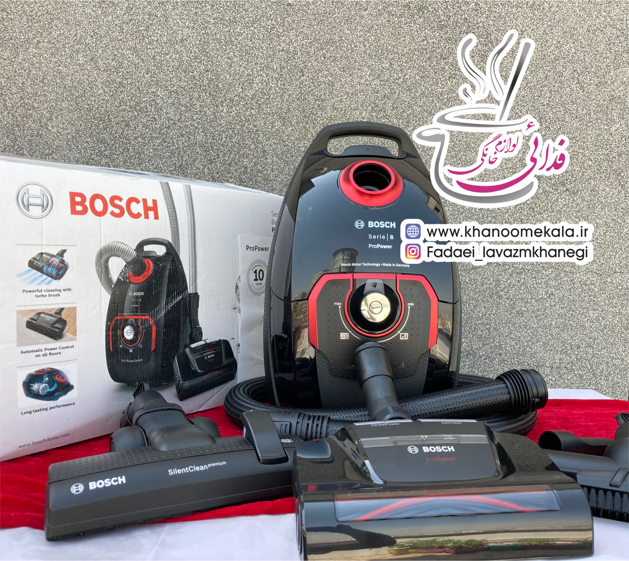 جارو برقی اکسکلوسیو بوش BOSCH مدل BOSCH ProPower BGL8POW2 با توان 650 وات  جزو حرفه ای ترین جارو برقی های شرکت بوش میباشد. جارو برقی BGL8POW2 مجهز به تکنولوژی های پیشرفته بوده که شامل سیستم Power Protect میباشد که حتی هنگام پر بودن مخزن نیز ، دستگاه مکش عالی دارد .  در این جارو برقی از کیسه یکبار مصرف در اندازه  XXL استفاده میشود که ظرفیت بالایی دارد و حجم زیادی از زباله و خاک را در خود جای میدهد و پس از پر شدن کیسه ، توسط نشانگر روی بدنه، شما را مطلع میسازد.جارو برقی BOSCH دارای فیلتر بهداشتی قابل شستشوی HEPA بوده که سلامت خانواده را در برابر حساسیت ها و بیماری های تنفسی تضمین می نماید. با فشردن دکمه روی پنل اصلی دستگاه روشن و خاموش شده و چرخاندن آن قدرت مکش تنظیم میگردد. برای حرکت آسان دستگاه روی سطوح ، 4 چرخ با قابلیت چرخش 360 درجه زیر بدنه جارو برقی تعبیه شده است. سری پارویی دستگاه به صورت پیشرفته طراحی شده و مناسب برای جارو نمودن سطوح صاف مانند فرش ، پارکت ، سرامیک و … میباشد.