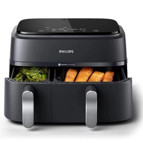 ۸ برنامه پخت از پیش تنظیم شده / تکنولوژی تهویه هوا سریع / سازگاری با اپلیکیشن HomeID / دارای یک سبد با ظرفیت ۶ لیتر و یک سبد با ظرفیت ۳ لیتر / ۲ کشو با دمای از پیش تعیین شده برای سیب زمینی سرخ شده تازه، سیب زمینی سرخ شده یخ زده، مرغ، گوشت، سبزیجات، ماهی، کیک و گرم کردن مجدد.